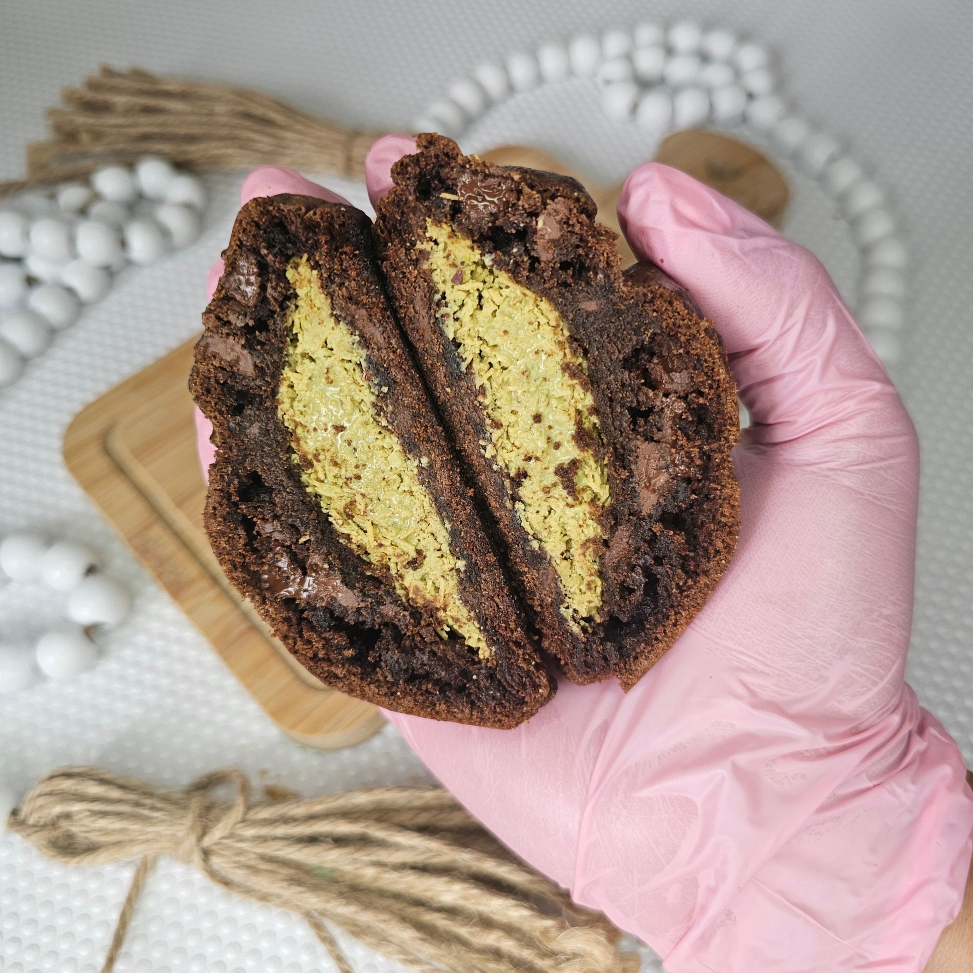 An exotic blend of flavors for the most refined palates. Our Dubai Chocolate combines a rich, smooth chocolate dough with a delicate pistachio cream mixed with Kadayif (thin pastry strands), adding a unique texture. Inspired by Middle Eastern flavors, this cookie is a true delight for those seeking a gourmet experience.